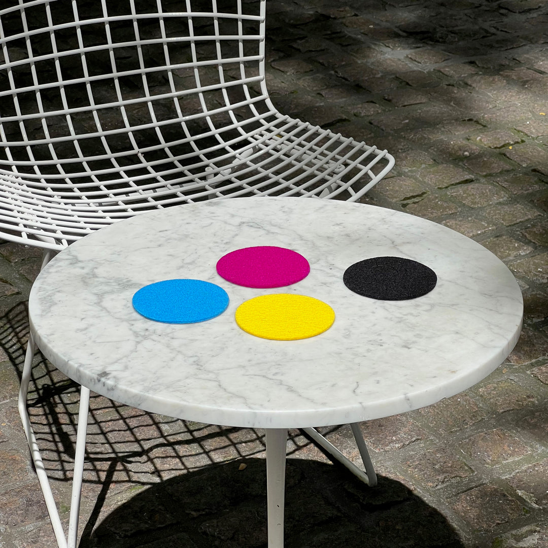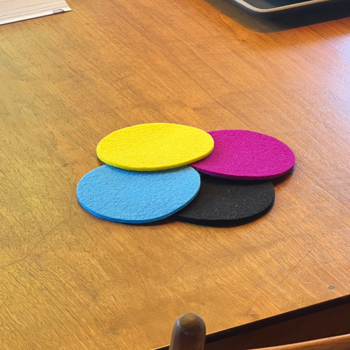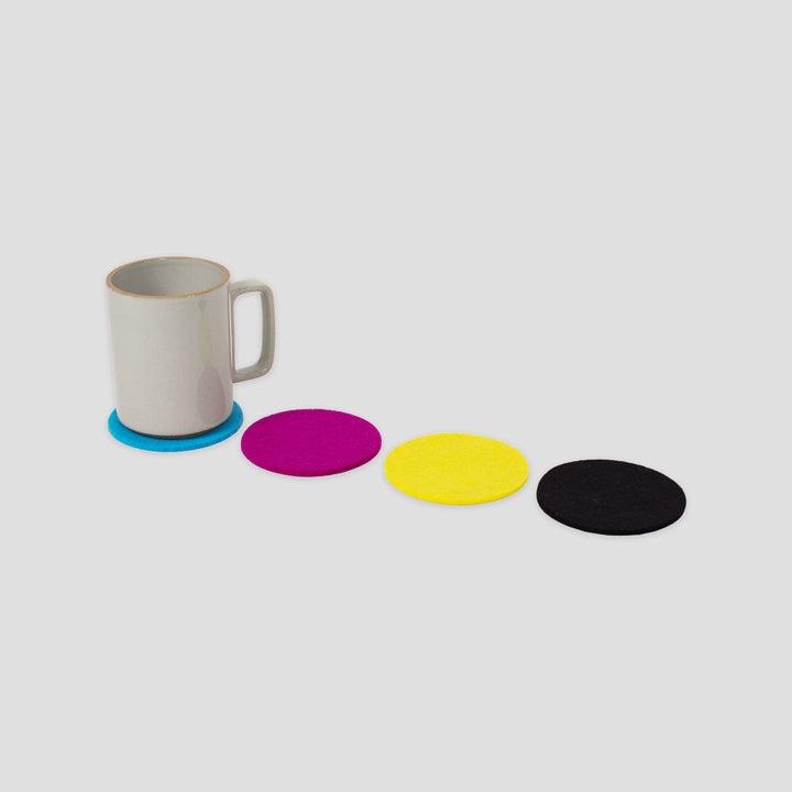 - Hand-cut heavy duty 4"x4", 3mm thick wool felt coasters