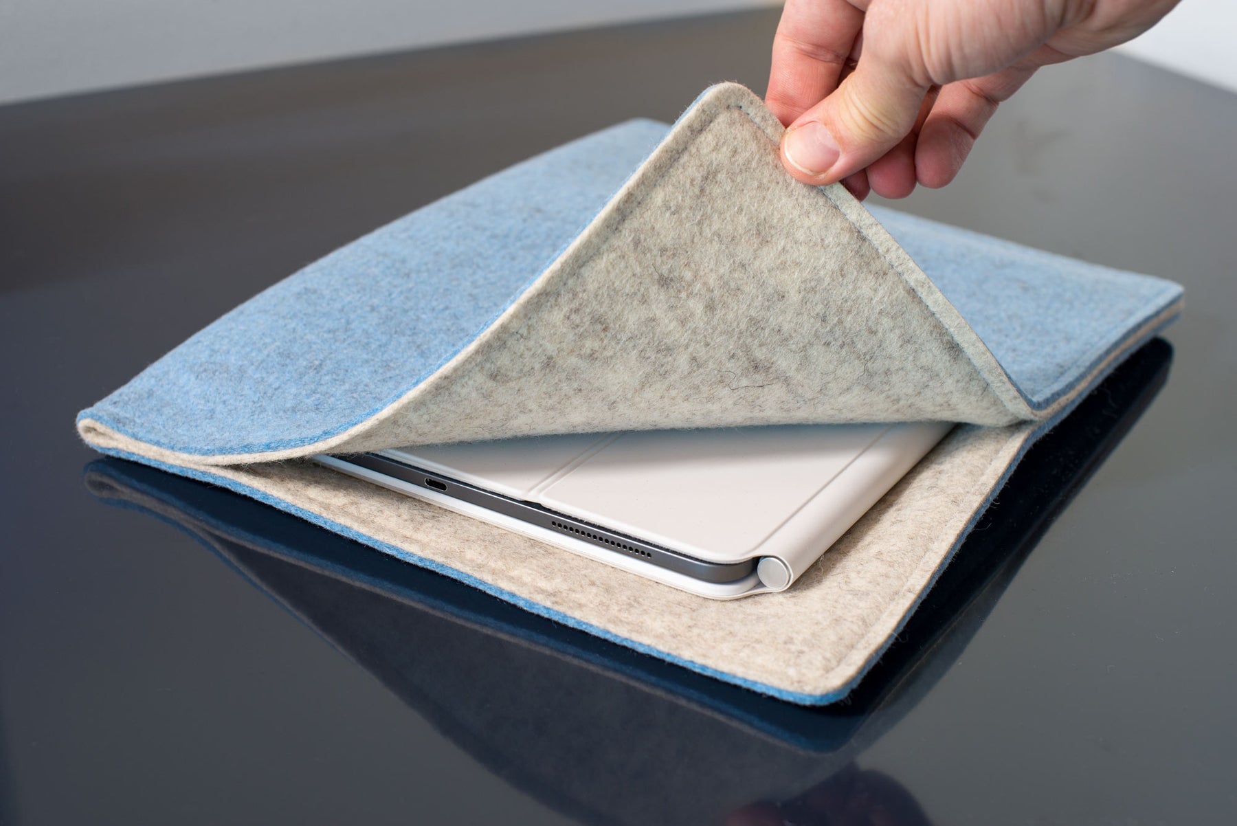 This Merino wool felt sleeve features hidden magnets for easy transformation from a protective sleeve to a functional desk pad. Portability is ensured with Magic Sleeve, the original two-in-one solution perfect for organizing and transporting your desk setup.