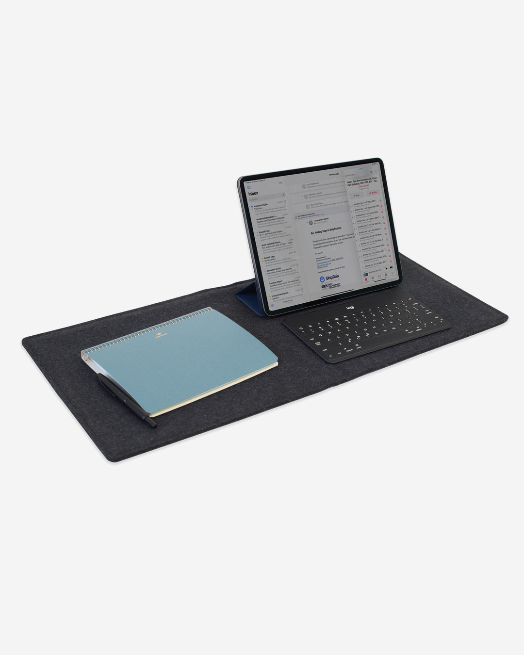 - fits up to a 12.9" iPad Pro (with Magic Keyboard and pencil attached) and a 14" MacBook Pro.